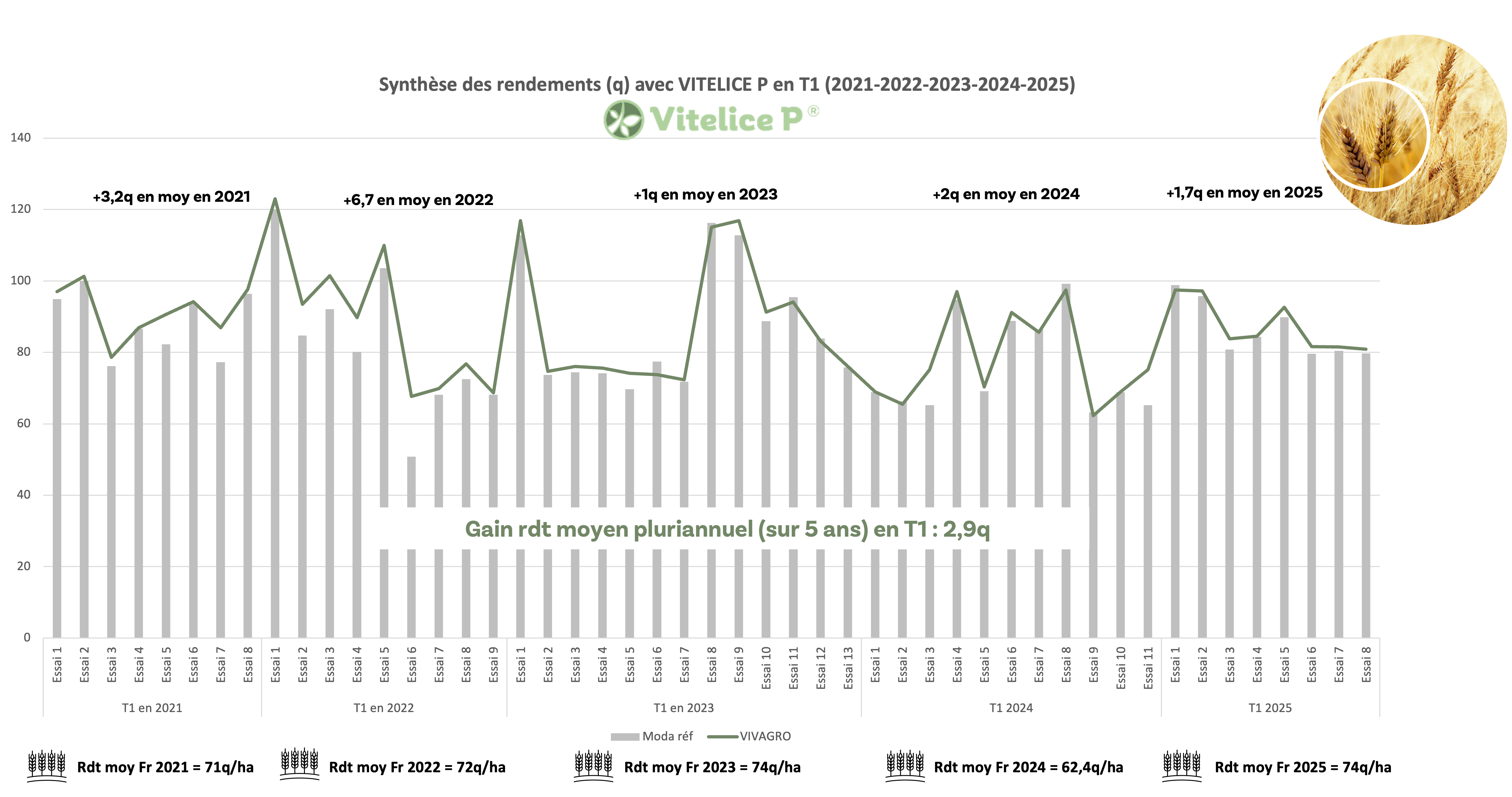 Efficacité de Vitelice P®* démontrée à travers une synthèse pluriannuelle :